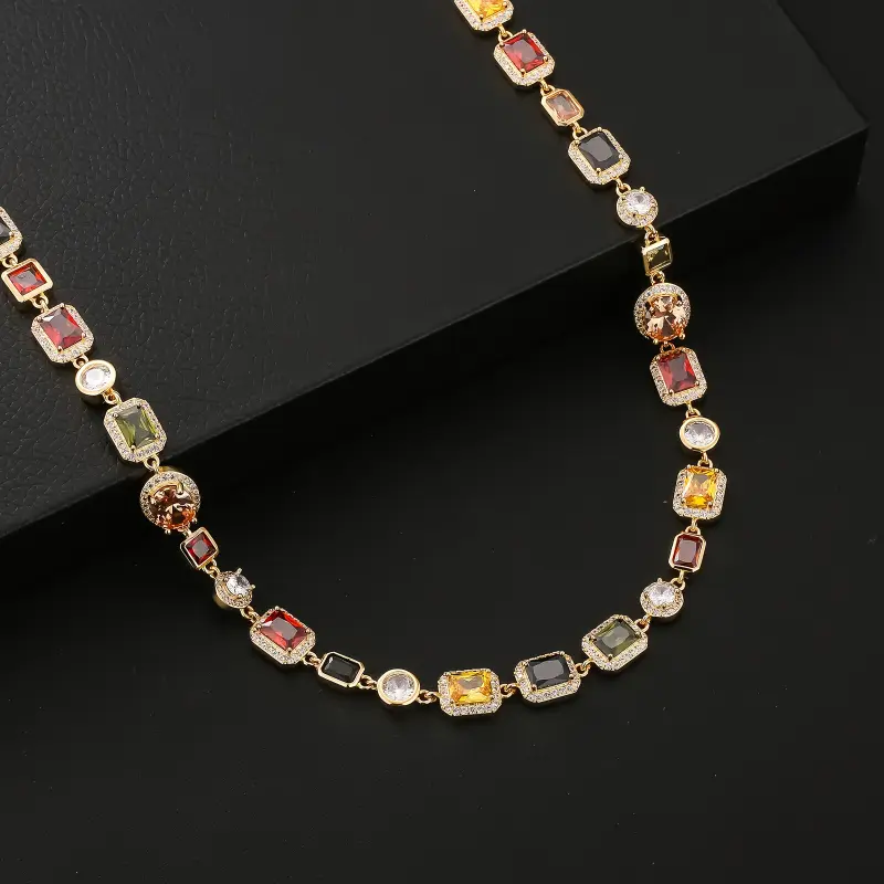 1pc 10mm Colorful Faux Faux Gemstone Necklace, Unisex Hip Hop Western Style, Synthetic Cubic Zirconia, Copper, Glamorous Chain, for Carnival, Valentine’s, St. Patrick’S Day Pendants Jewelery undefined jewelry Stainless Steel by charlotte lotus necklace
