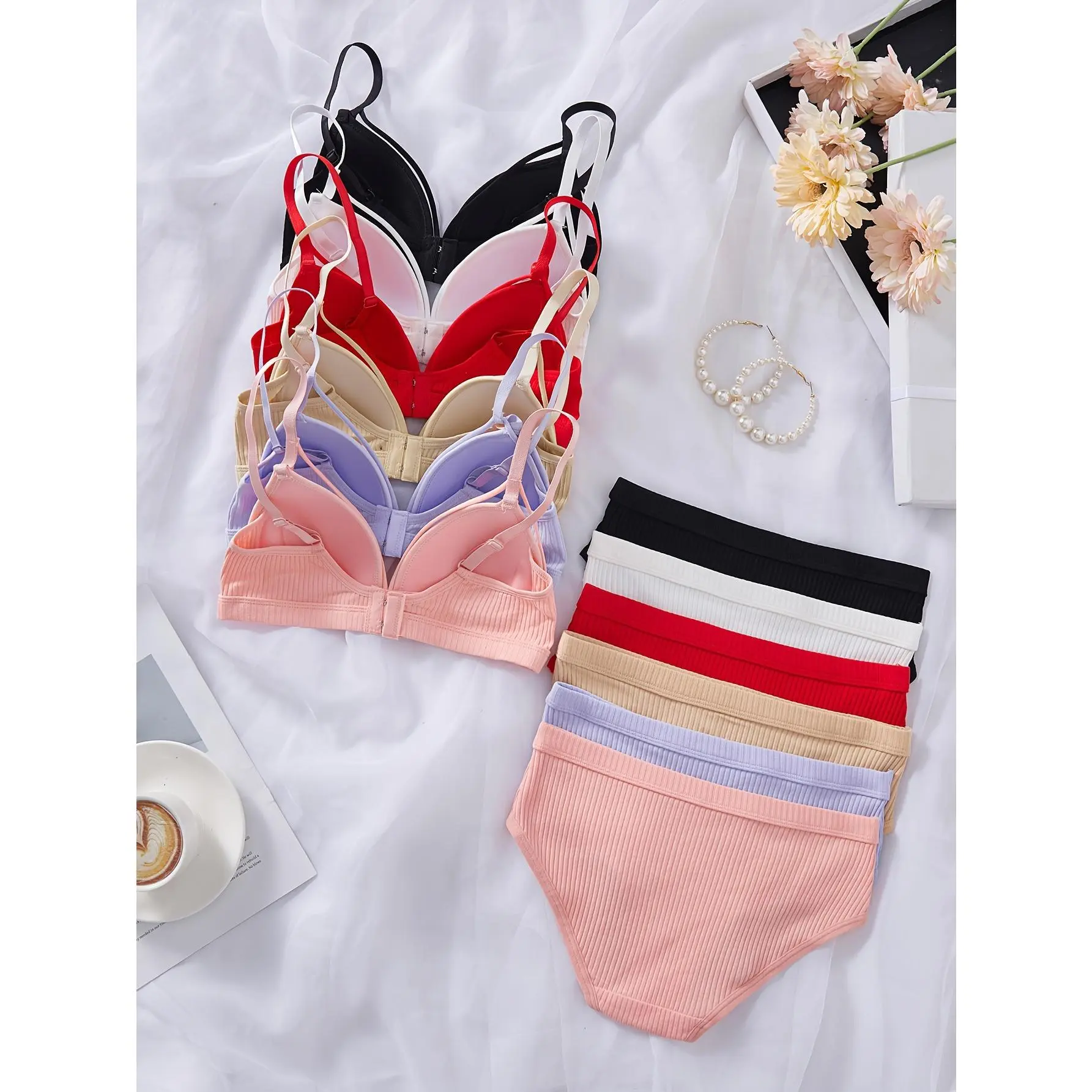 6-Piece Casual Underwear Set, Solid Color Camisole Bra and Panties – Women’s Underwear – Soft and Comfortable Fabric – Suitable for Women – Perfect for Daily Wear and Special Occasions – Ideal Gift for Her