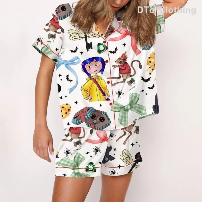 Coraline Satin Pajama Set For Women, Print Comfy Satin Sleepwear & Loungewear , Nightwear, Womenswear , Classic GlamourWave44www-1238