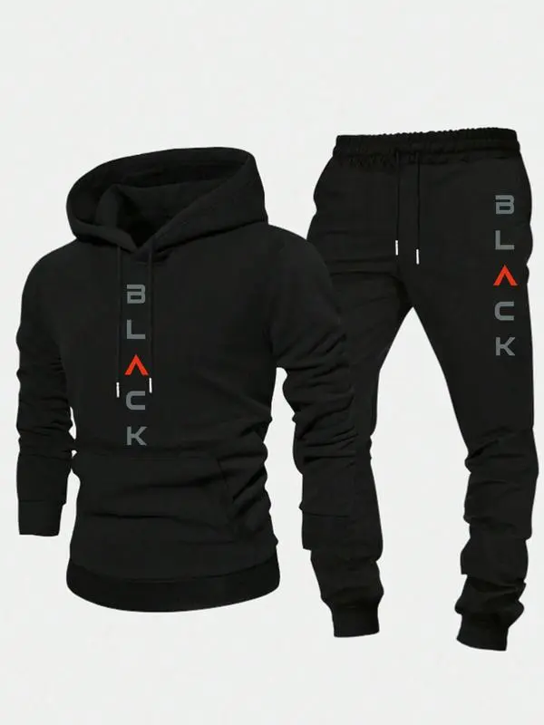 Men’sLetterPrintDrawstringHoodie&PantsTwo-PieceSet,RegularFitCasualLongSleeveHoodedSweatshirt&JoggerPantsforSpring&Fall,Men’sTwo-pieceOutfitsforDailyWearBlouses & Shirts