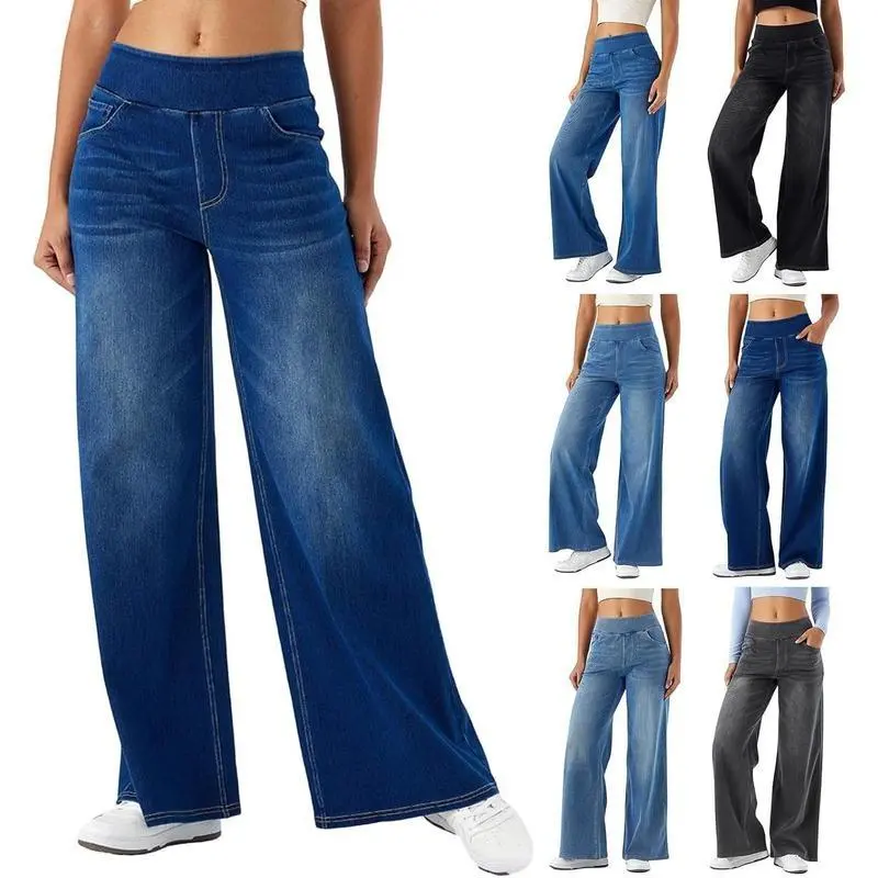 Women Sweatpant Jeans Sweatpants That Look Like Jeans High Waisted Stretchy Pull On Wide Leg Pants with Pocket