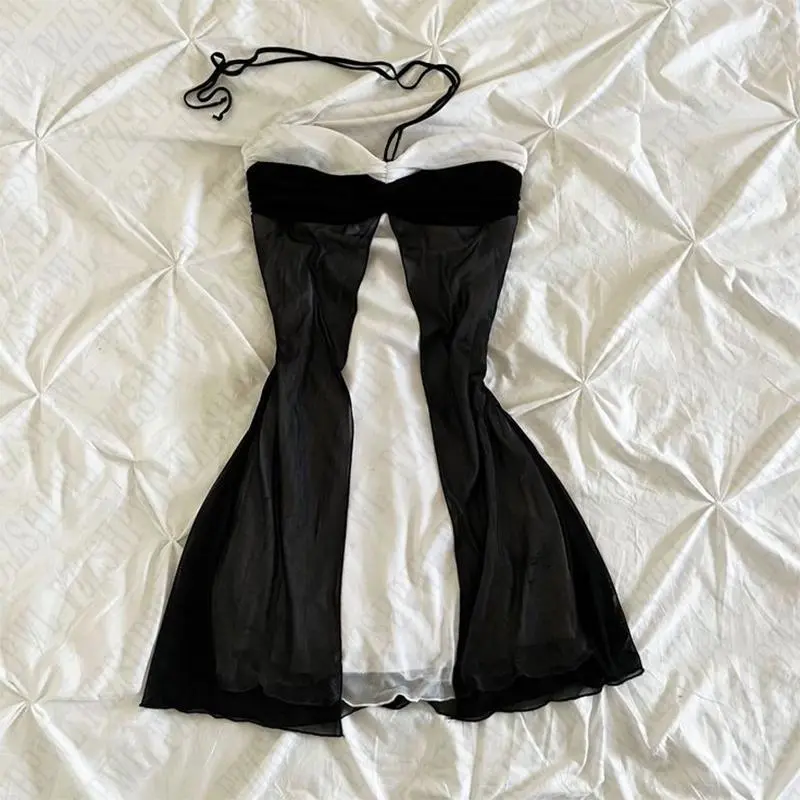 Women’s Harajuku 2000s Dress Casual Slim Chic Solid Color Halter Neck Dresses Grunge Punk Mood Girls Streetwear Womenswear Polyester Spaghetti Strap Style Formal Basic
