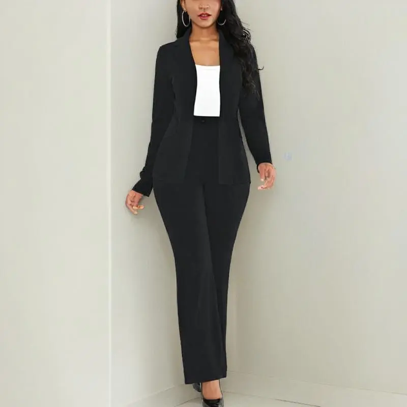 Women’s Two-Piece Set Plain Button Lapel Neck Blazer and Suit Pants Elegant Business Casual Long Sleeve Outerwear and Trousers for Daily Outdoor All-Season Wear Fitted Womenswear