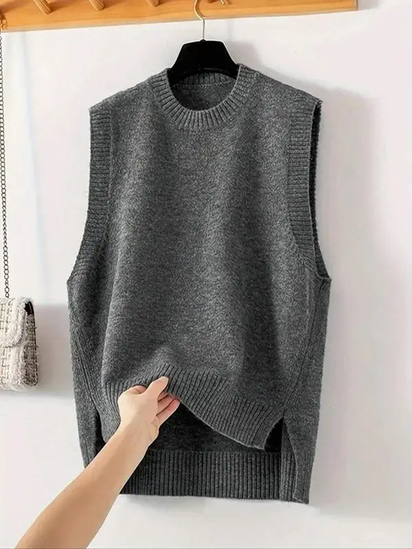 Women’sSolidColorRoundNeckSweaterVest,CasualSleevelessKnitwearTopforDailyWear,LadiesKnitClothingforFall&WinterBlouses & Shirts